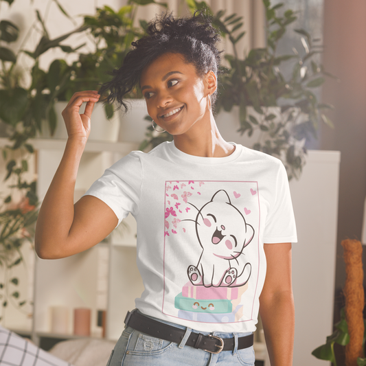Kawaii Kittie Short-Sleeve Unisex White T-Shirt by laurameghan