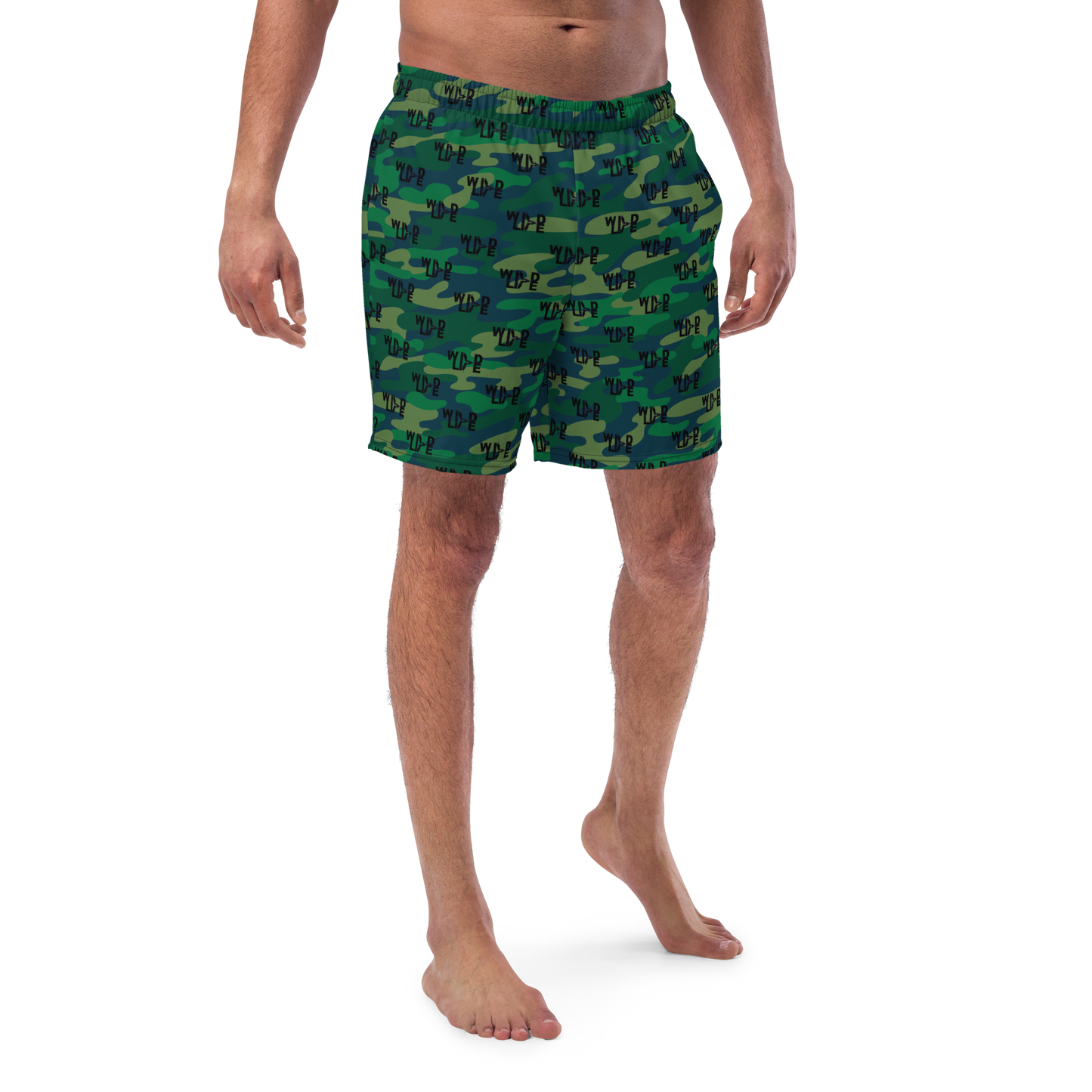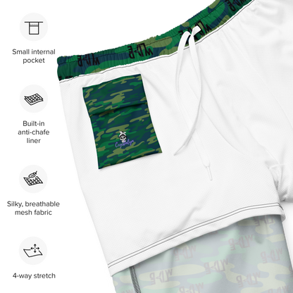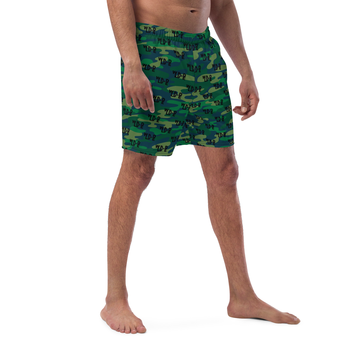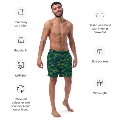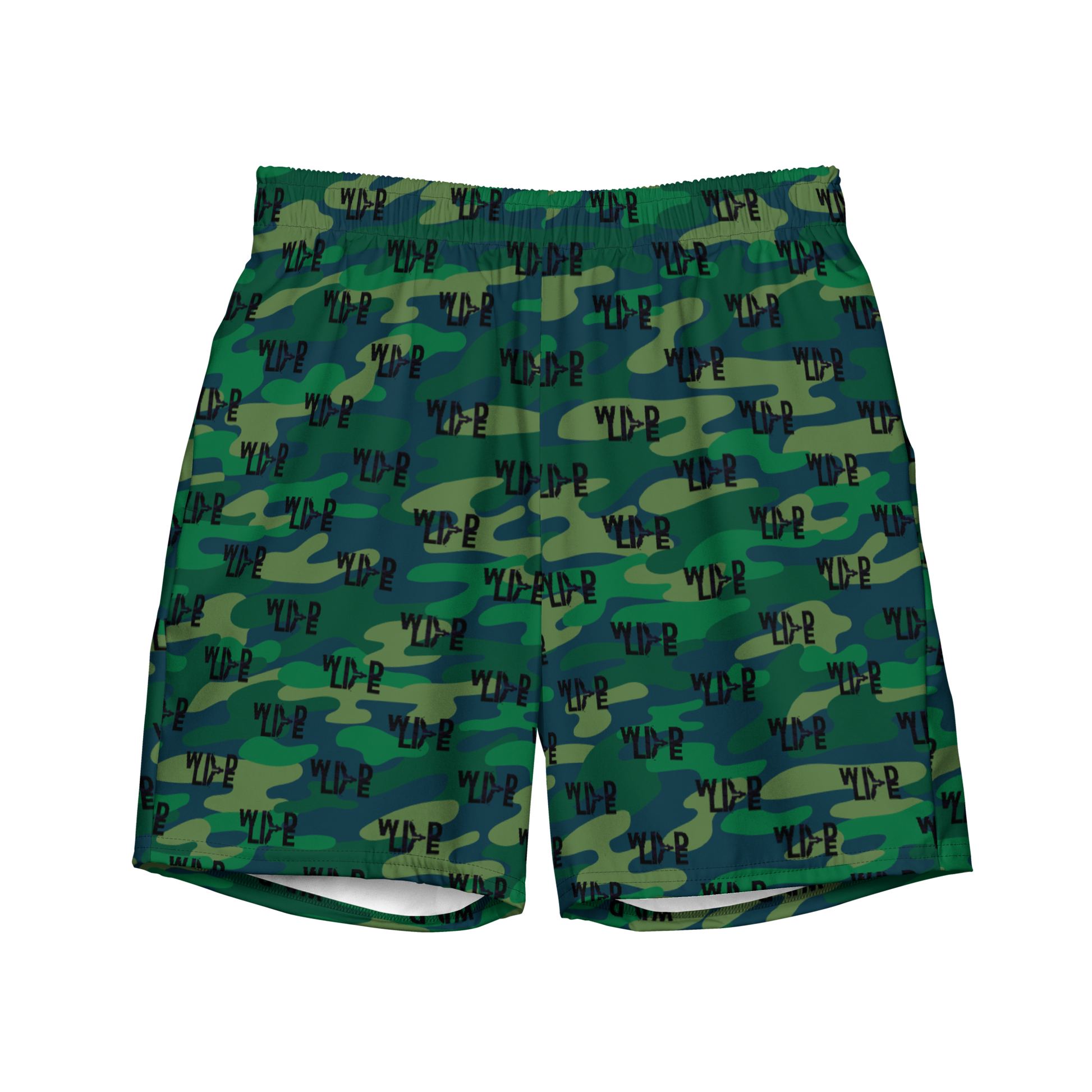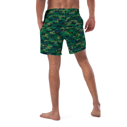 Florida Wildlife Logo in Black Dark Green Camo Swim Trunks by Crystalyn