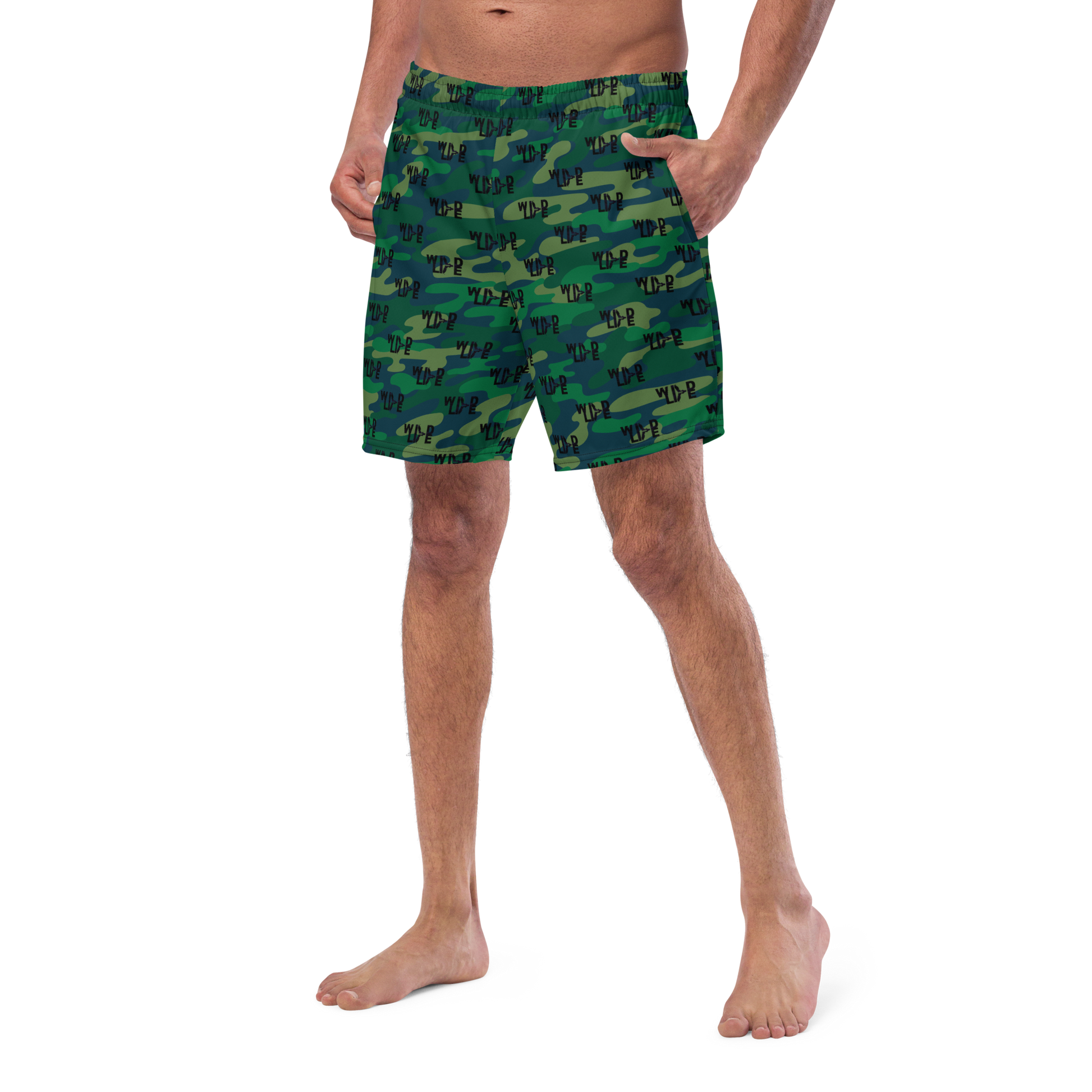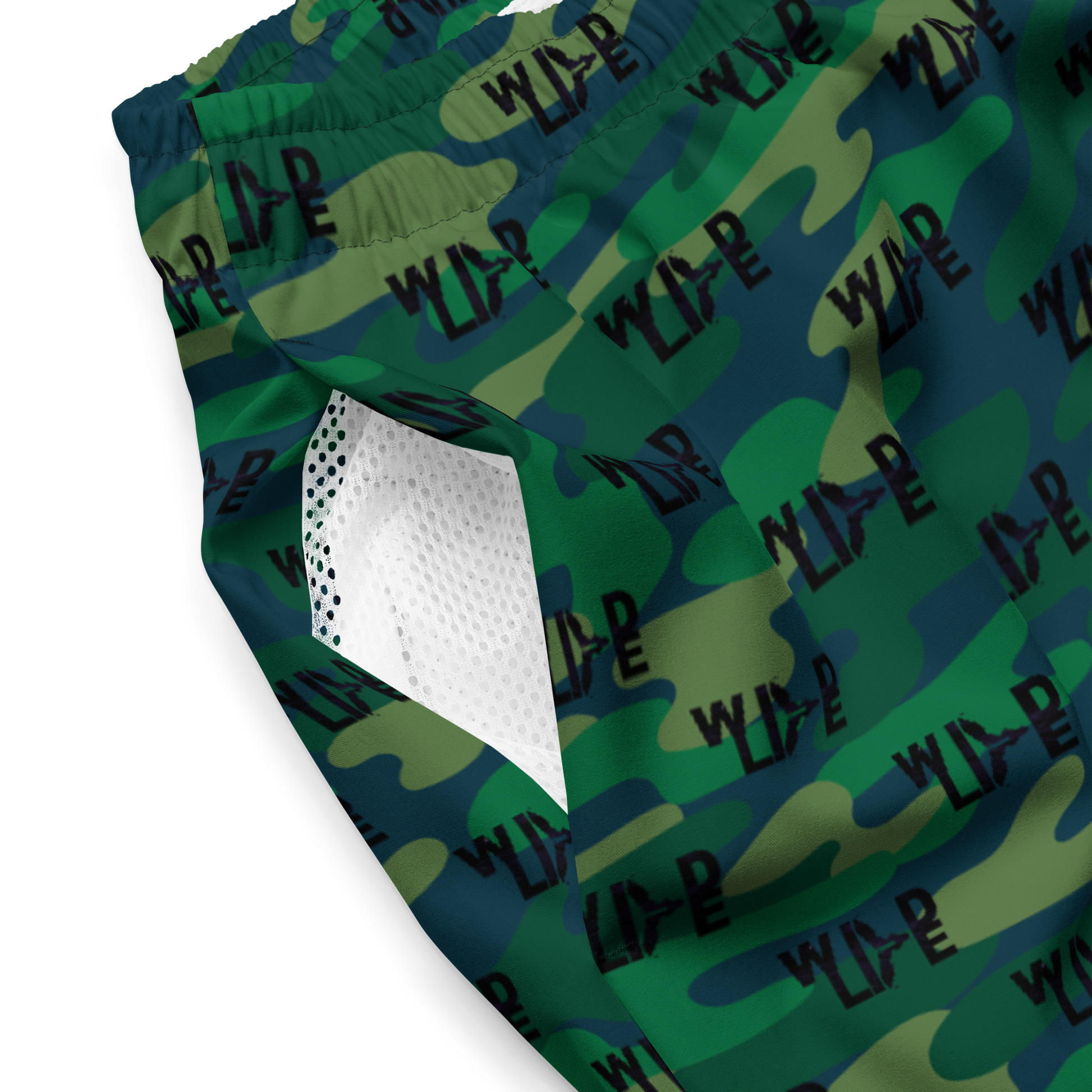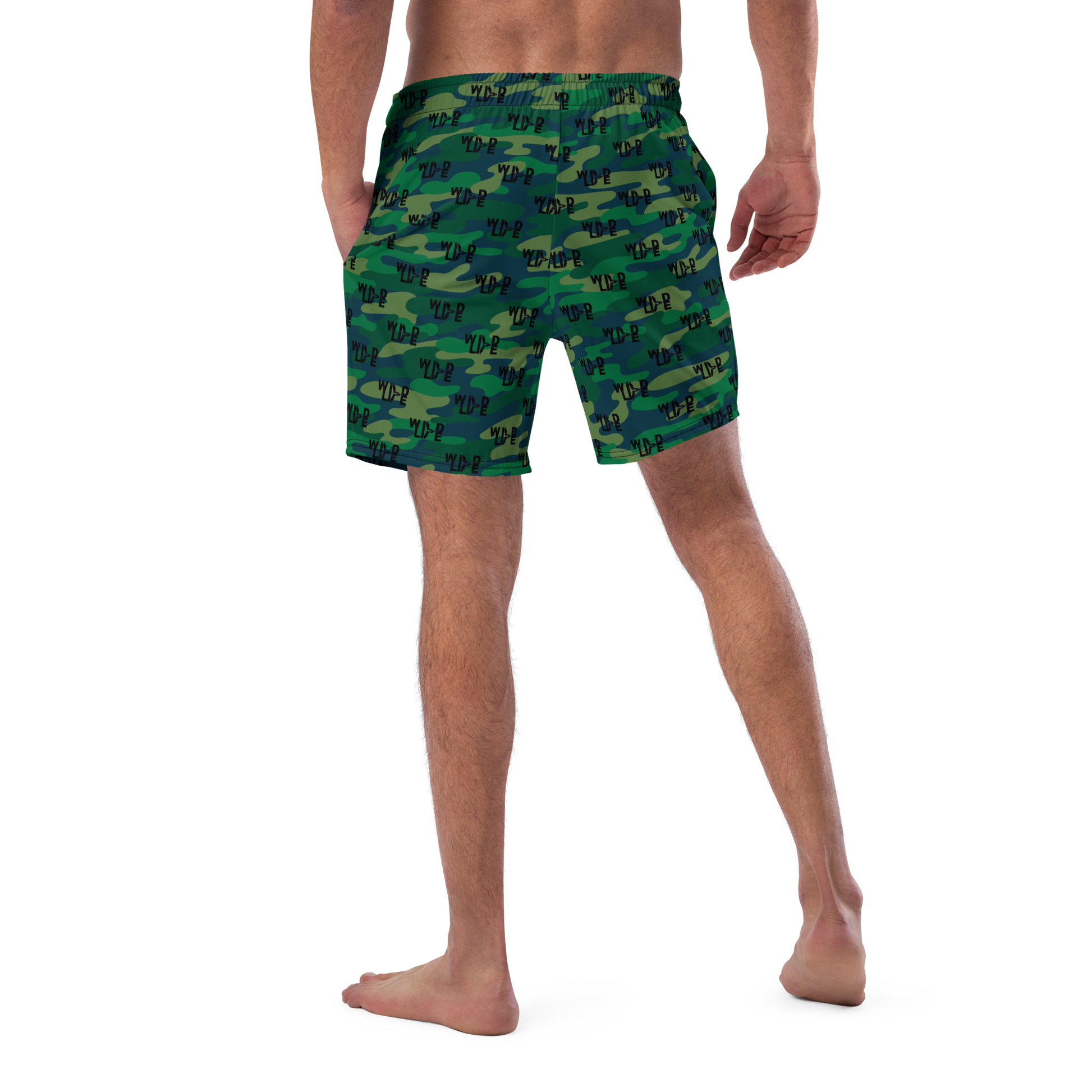 Florida Wildlife Logo in Black Dark Green Camo Swim Trunks by Crystalyn