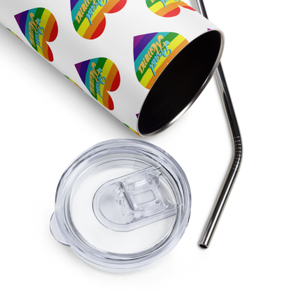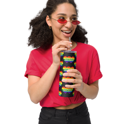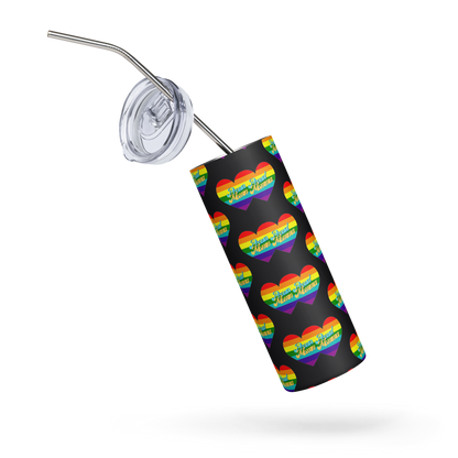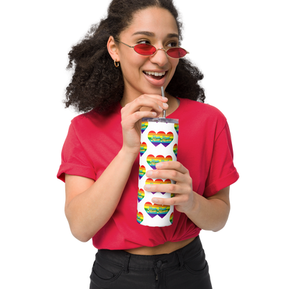 Enjoy hot or cold drinks on the go with this stylish stainless steel tumbler! This reusable tumbler with a metal straw is a perfect combo for hot or cold drinks at any time of the day.