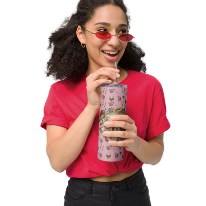 Enjoy hot or cold drinks on the go with this stylish stainless steel tumbler! This reusable tumbler with a metal straw is a perfect combo for hot or cold drinks at any time of the day.