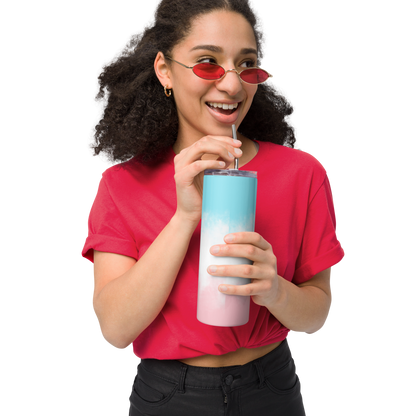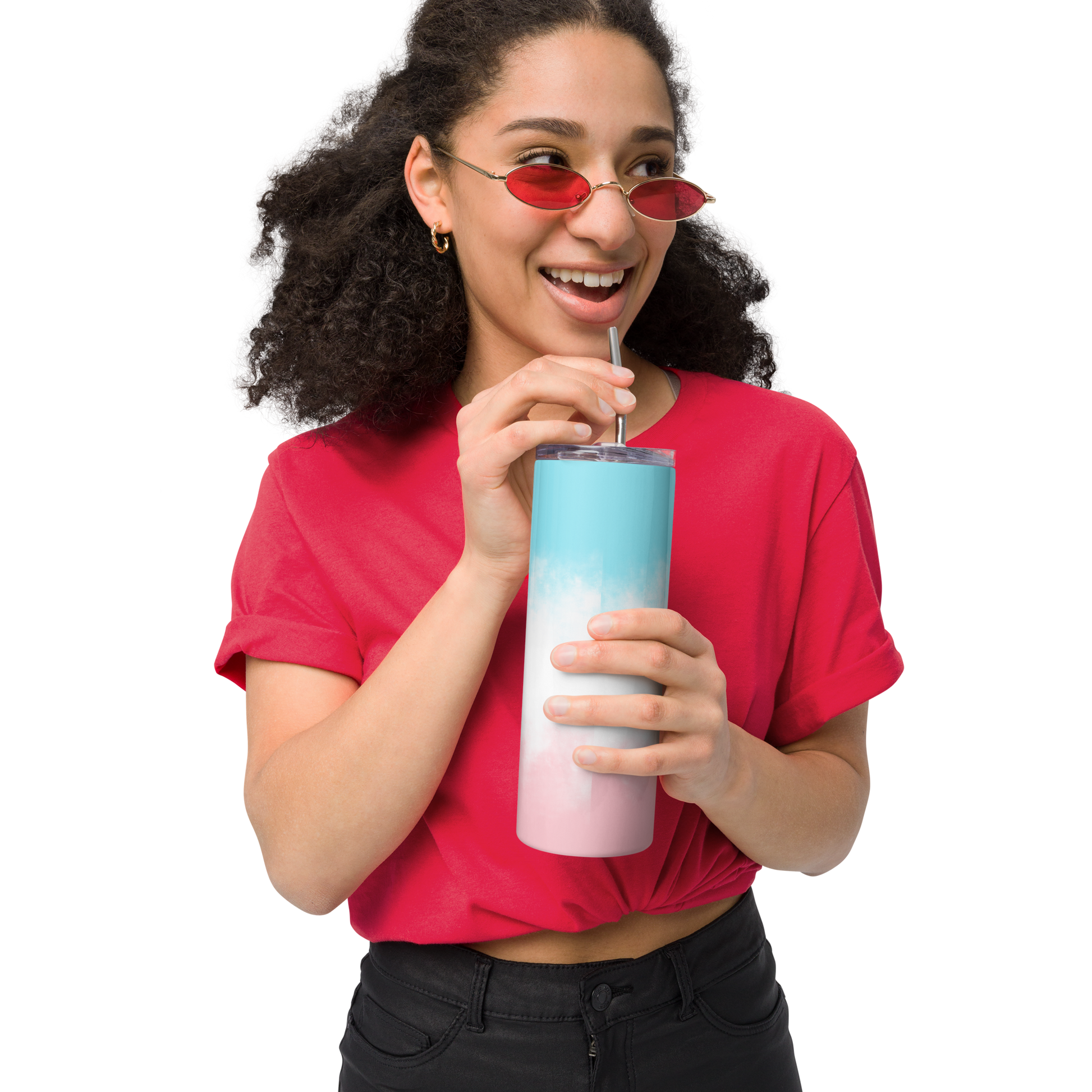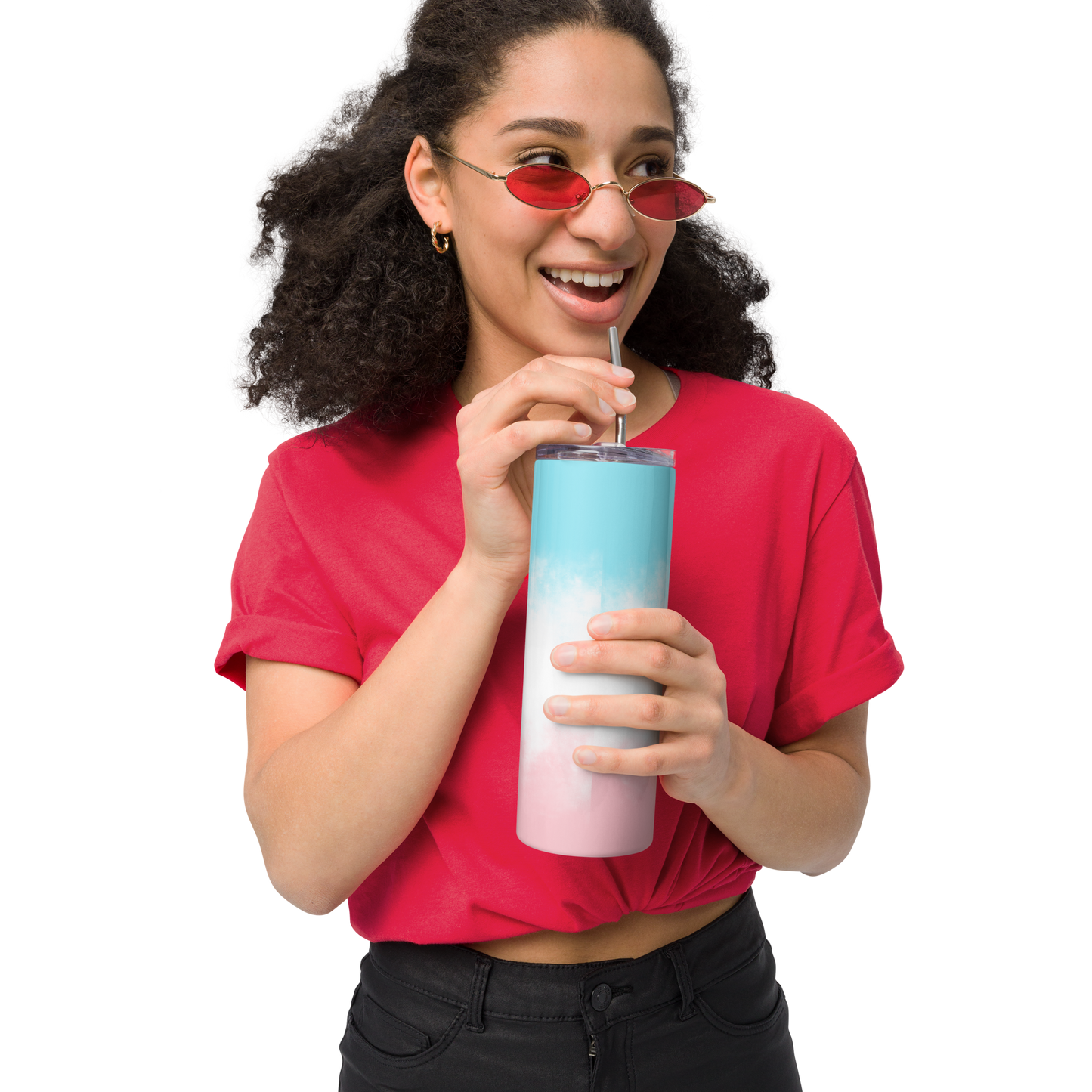 Enjoy hot or cold drinks on the go with this stylish stainless steel tumbler! This reusable tumbler with a metal straw is a perfect combo for hot or cold drinks at any time of the day.