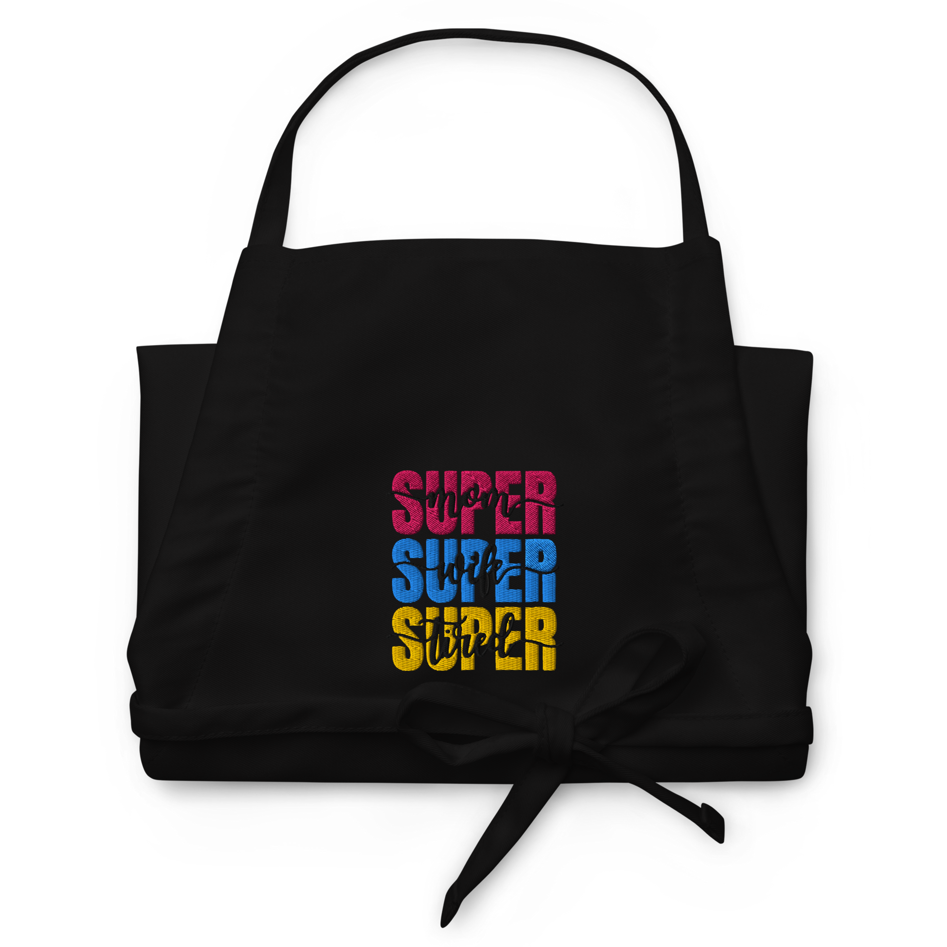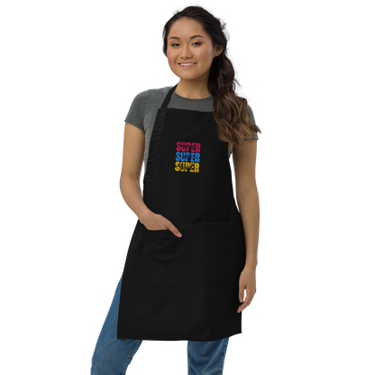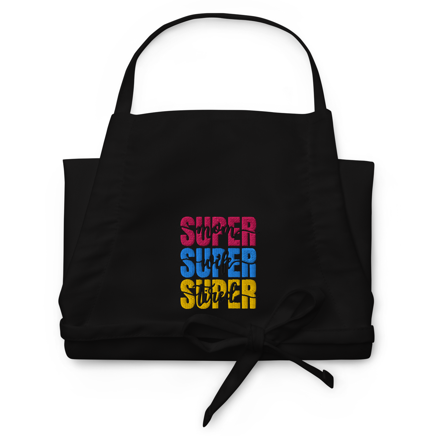 Thanks to this embroidered apron you don't have to worry about keeping your clothes clean when cooking! The neck loop and long ties, two front pockets, and intricate embroidery in front all come together in an eye-catching and comfy accessory that'll make you long for more time in the kitchen.
