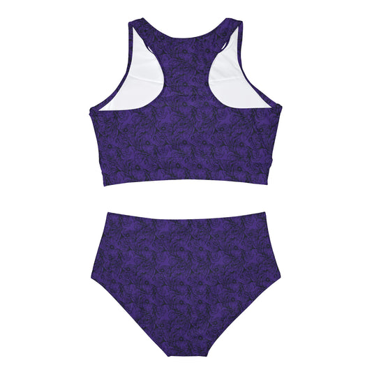紫色细绳比基尼,由 laurameghan 设计的维多利亚花卉图案