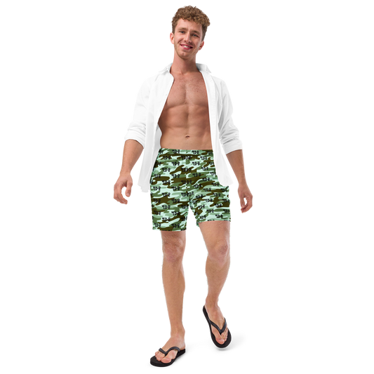 Crystalyn 出品的黑绿迷彩泳裤上印有佛罗里达野生动物标志