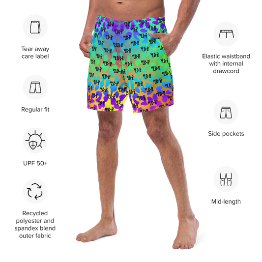 Crystalyn 出品的黑色彩虹动物印花泳裤,印有佛罗里达野生动物标志