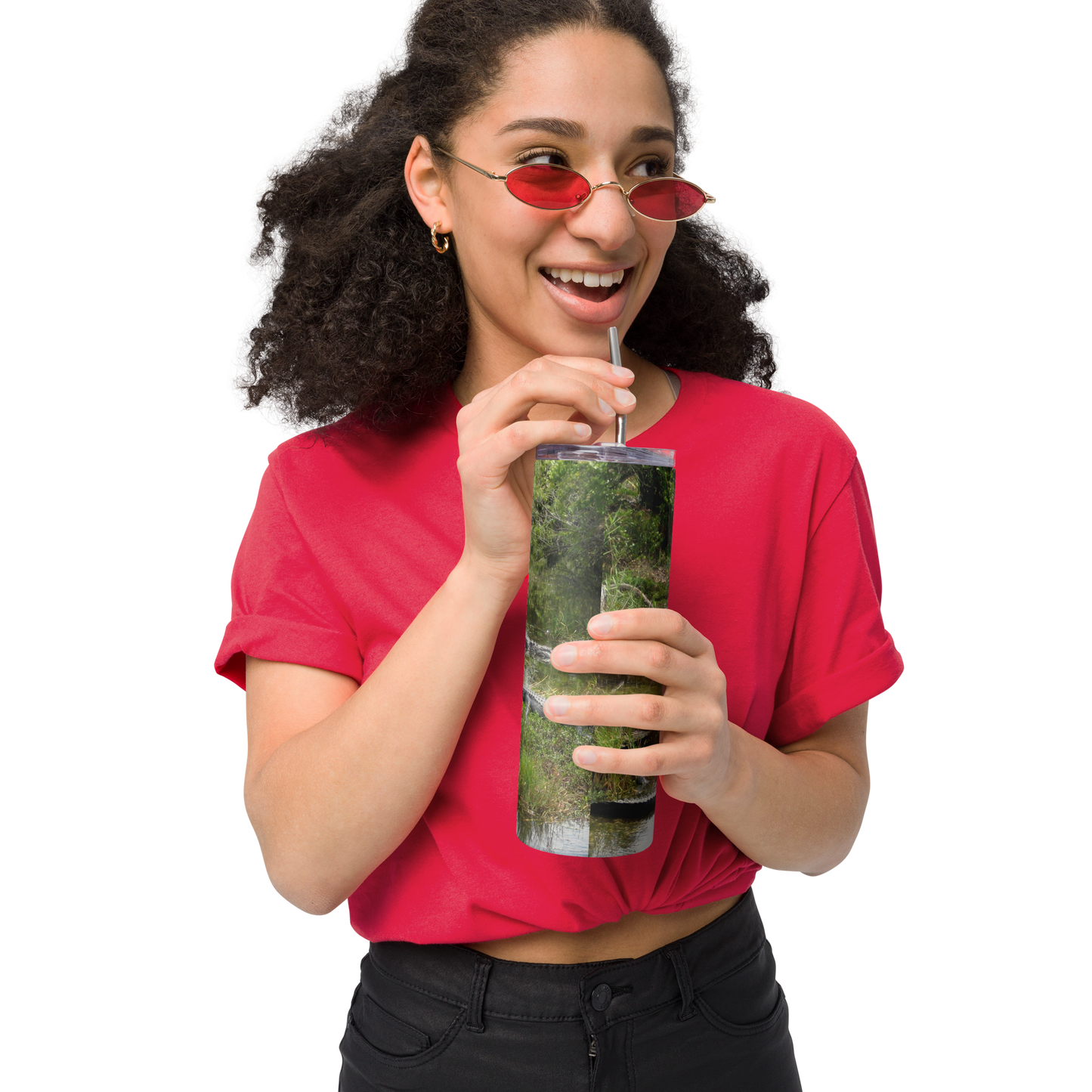 Enjoy hot or cold drinks on the go with this stylish stainless steel tumbler! This reusable tumbler with a metal straw is a perfect combo for hot or cold drinks at any time of the day.