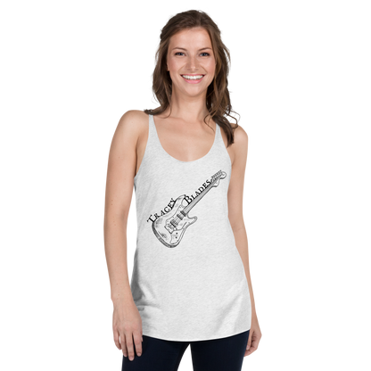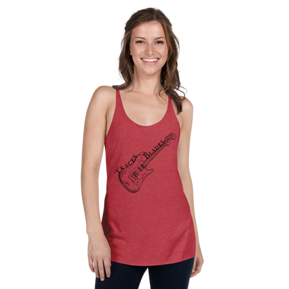 This racerback tank is soft, lightweight, and form-fitting with a flattering cut and raw edge seams for an edgy touch.